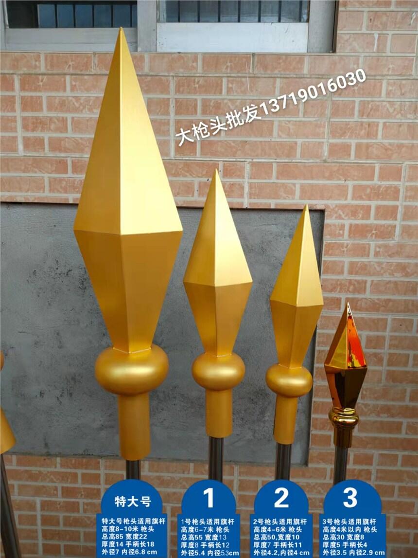 50公分高新款红旗大枪头,不锈钢旗头,金色加大旗尖,礼堂旗枪尖,大红旗旗头制作